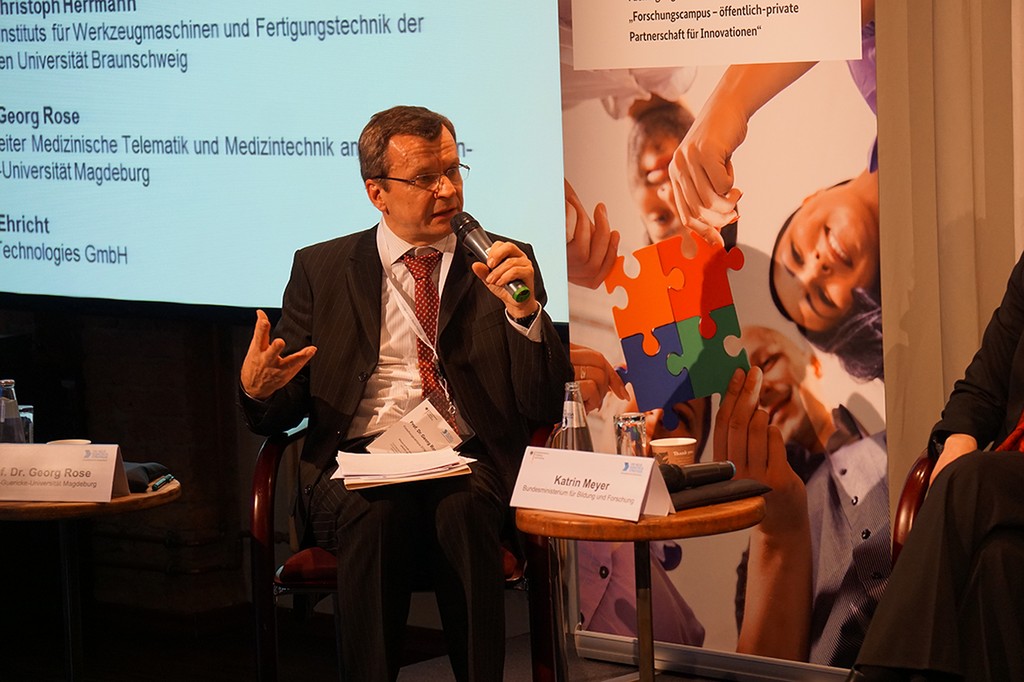 In Berlin fand am 14. und 15.01.2015 die Fachtagung „Wissenschaft und Wirtschaft effektiv vernetzen“ des Bundesministeriums für Bildung und Forschung (BMBF) statt, welche von der Begleitforschung „Forschungscampus pro aktiv“ und dem Projektträger Jülich organisiert wurde. An dieser Veranstaltung nahmen Vertreter des BMBF, des Projektträgers Jülich (PTJ), des Vereins Deutscher Ingenieure (VDI) sowie Repräsentanten der Forschungscampi teil. In Vorträgen und Workshops wurde der aktuelle Stand der verschiedenen Forschungscampi vorgestellt und diskutiert. Der Forschungscampus STIMULATE wurde durch zahlreiche Partner aus Wirtschaft und Wissenschaft vertreten.