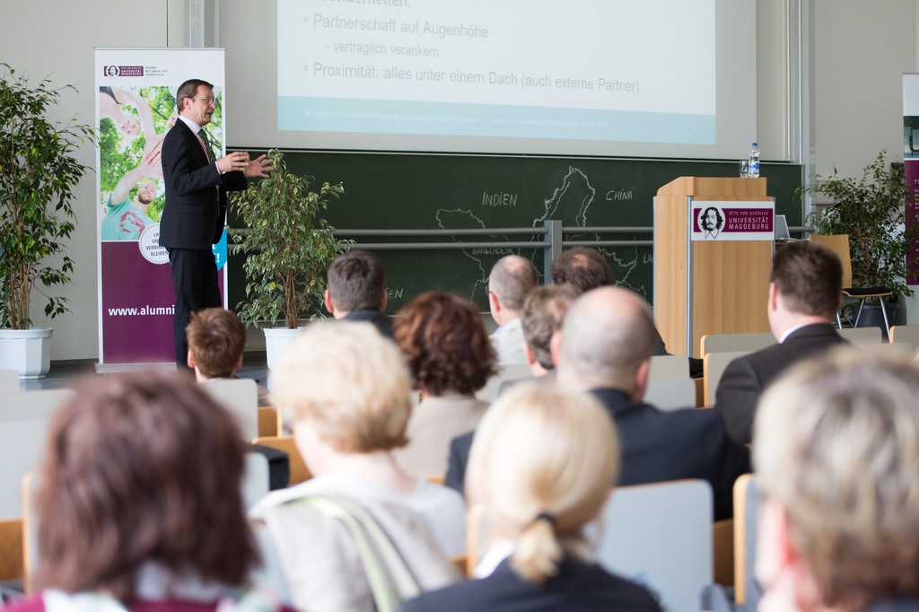 Anlässlich Ihres erfolgreichen Studienabschlusses vor 50 bzw. 25 Jahren, begrüßte die Otto-von-Guericke-Universität Magdeburg am 29.05. und 30.05.2015 ihre Alumni der Abschlussjahrgänge 1965 und 1990. Im Rahmen dieser Veranstaltung hielt Prof. Rose einen Festvortrag, indem er den Forschungscampus STIMULATE präsentierte.