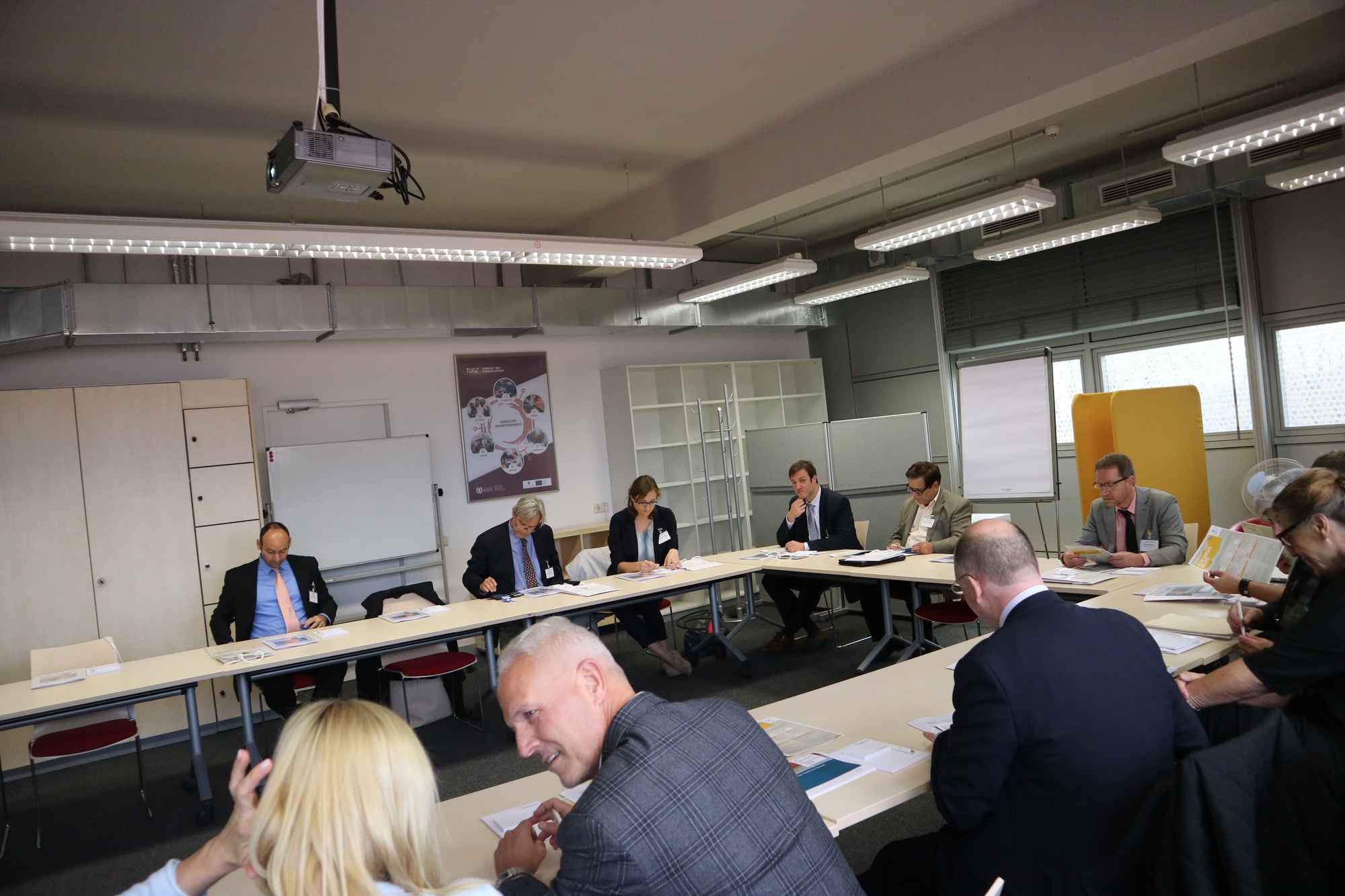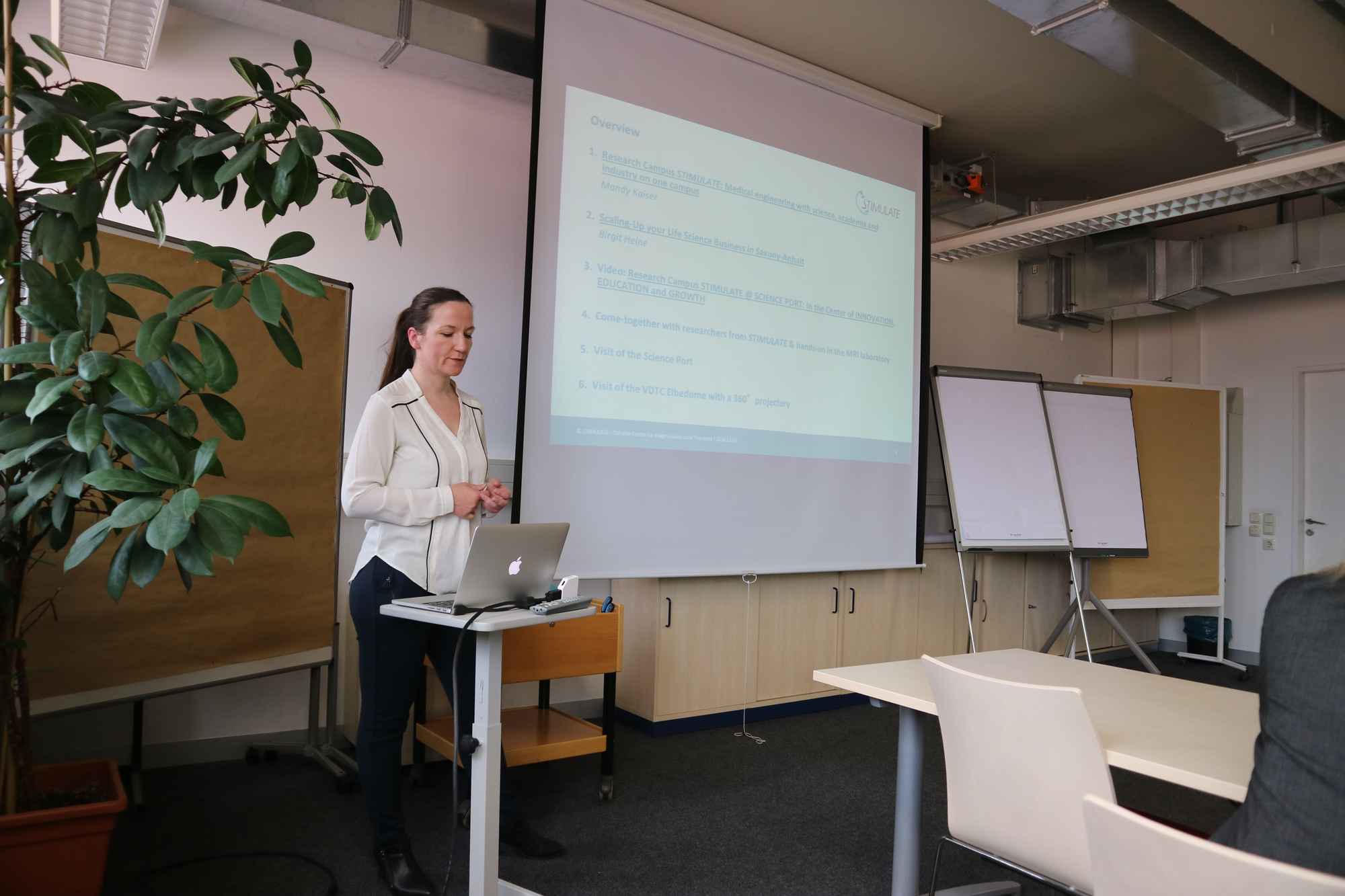 Der Forschungscampus STIMULATE präsentierte sich am 09.11.18 auf der Pre-Medica-Tour 2018, welche von Germany Trade And Invest (GTAI) organisiert wurde und das Ziel hatte, US-amerikanischen Multiplikatoren aus dem MedTech-Sektor mit den innovativsten Forschungsverbünden aus den neuen Bundesländern zusammenzubringen. Mit Unterstützung der Investitions- und Marketinggesellschaft Sachsen-Anhalt konnte ein vielfältiges Programm angeboten werden, welches neben informativen Vorträgen auch ein Come-Together mit Wissenschaftler/innen von STIMULATE sowie ein Hands-On am Forschungs-MRT enthielt. Bei diesem konnten die Teilnehmer/innen selbstständig unter Verwendung des optischen Moiré-Phase-Trackings eine Nadel in einem Phantom platzieren oder das MRT berührungslos mit unserem Leap-Motion-System steuern. Das Programm wurde abgerundet von einem Besuch der Baustelle des neuen Forschungsgebäudes sowie einem interaktiven Einblick in die virtuelle Realität im VDTC des Fraunhofer IFF.