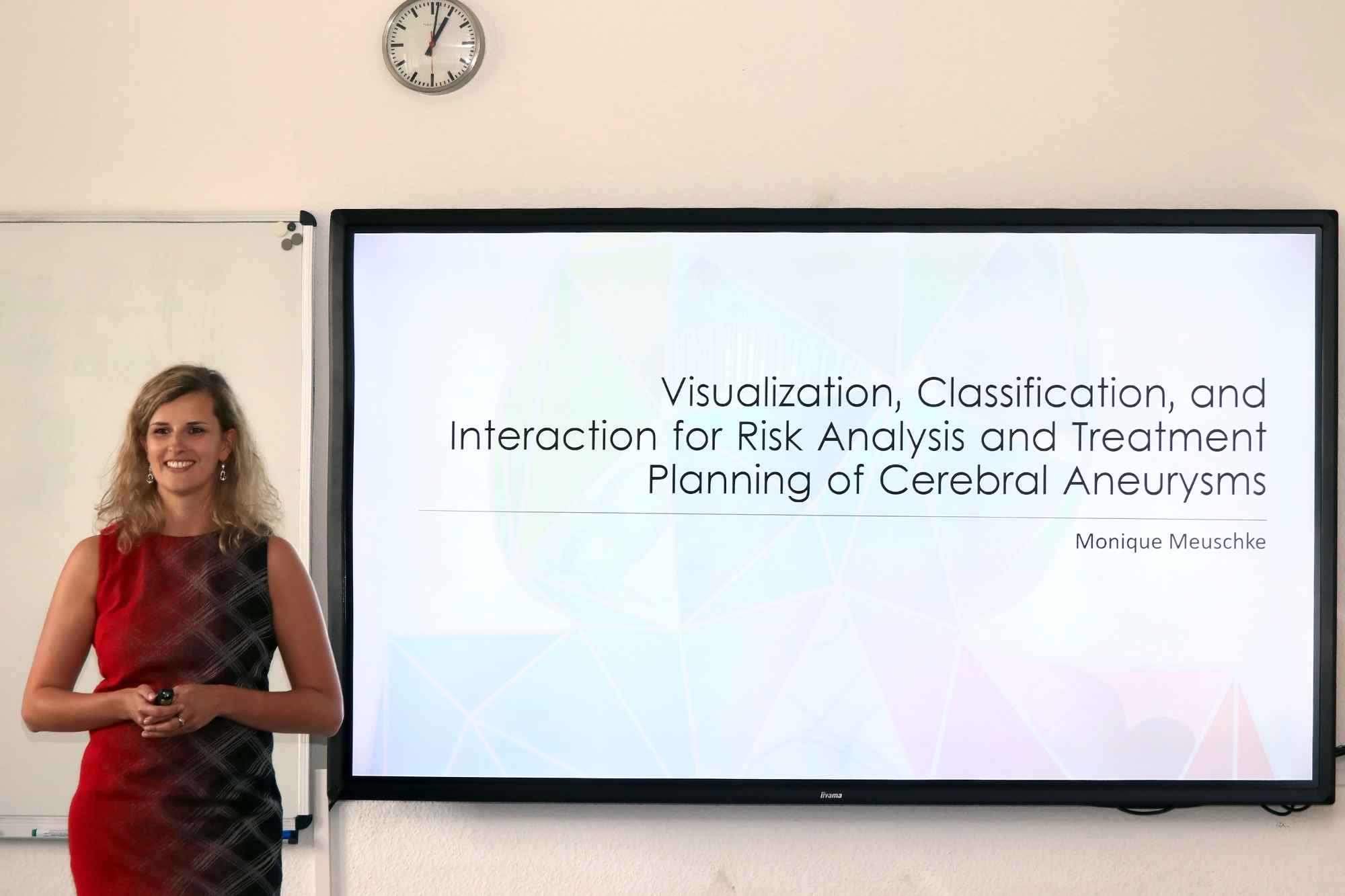 Monique Meuschke, die seit 2015 im Forschungscampus STIMULATE beschäftigt ist und dort in der Forschungsgruppe Hämodynamik/Tools arbeitet, hat am 3. Mai 2019 ihre Dissertation zur computergestützten Auswertung von simulierten Blutflussdaten erfolgreich verteidigt. Sie hat in ihrer Dissertation den gesamten Workflow der Auswertung mit leistungsfähigen Werkzeugen unterstützt. Die Methoden sind konsequent auf die Bedürfnisse von forschenden Medizinern und Strömungswissenschaftlern zugeschnitten und ermöglichen ein besseres Verständnis der komplexen Simulationsergebnisse. Unter anderem ist es mit ihren Werkzeugen möglich, den Blutfluss zu analysieren, zu abstrahieren und durch einen automatisierten Vergleich mit bekannten Flussmustern zu klassifizieren. In ihrer nur 3.5 Jahre dauernden Promotionsphase hat sie diese Arbeiten in 10 Zeitschriftenpublikationen zusammengefasst, von denen sie Erstautorin bei 7 dieser Veröffentlichungen ist. Nach einer herausragenden Verteidigung wurde ihre Dissertation mit Summa Cum Laude bewertet.