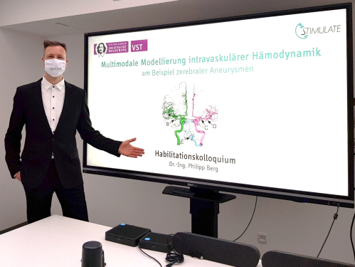 Am 17. Februar 2021 fand das Habilitationskolloquium von Herrn Dr.-Ing. Philipp Berg zum Erlangen des akademischen Grades Doktoringenieur habilitatus (Dr.-Ing. habil.) – pandemiebedingt in hybrider Form – statt. Das Thema seiner Habilitationsschrift lautete „Multimodale Modellierung intravaskulärer Hämodynamik am Beispiel zerebraler Aneurysmen“.