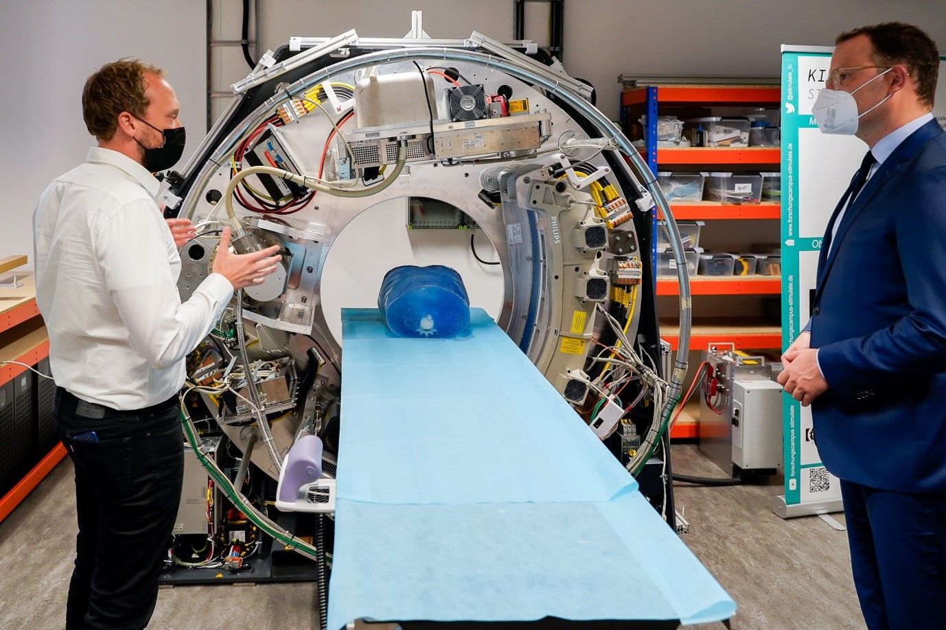 Auch der Blick zu unserem direkten Nachbarn im Speicher A durfte nicht fehlen: In einer Kurzpräsentation von Herrn Dr. Röll sowie Herrn Meyer der Neoscan Solution GmbH wurde eindrucksvoll sichtbar, wie unsere Forschungsergebnisse durch einen geschickten Transfer die Entwicklung und Umsetzung neuster Medizintechnik vorantreiben.