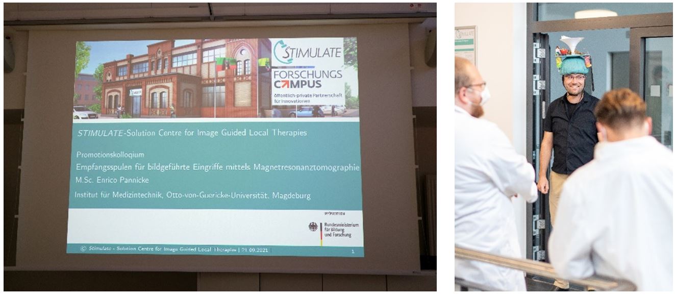 Am 21.09.2021 hielt Herr M.Sc. Enrico Pannicke erfolgreich sein Promotionskolloquium im hybriden Format ab. Das Thema seiner Dissertation lautet “Empfangsspulen für bildgeführte Eingriffe mittels Magnetresonanztomographie”. Vorsitzender der Prüfungskommission war Herr Prof. Dr.-Ing. A. Lindemann (FEIT/Institut für Elektrische Energiesysteme), die Gutachtenenden waren Herr Prof. Dr.-Ing. R. Vick (FEIT/Institut für Medizintechnik), Herr Prof. Dr. rer. nat. habil. O. Speck (FNW/ Institut für Physik), Herr Prof. Dr. H. Möller (Max-Plack-Institut für Kognitions- und Neurowissenschaften, Leipzig) und als Mitglied fungierte Herr Prof. Dr.-Ing. habil. H. Maune (FEIT / Institut für Informations- und Kommunikationstechnik).