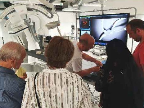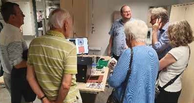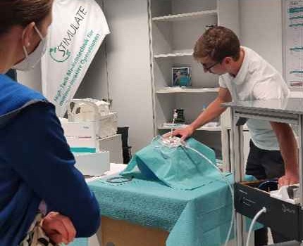 The STIMULATE showmobile, the ambulance converted into a rolling research laboratory, provided insights into the interior of an ambulance in front of the building, allowed visitors to experience the sense of touch and sight interactively with a haptic structure and invited them to take part in a 3D X-ray quiz. During the CT tour, the procedure of a clinical CT examination was explained directly on the CT scanner, a research CT without a housing revealed the components in a CT machine and our CT quiz ensured that heads were spinning and that the visitors were successful. The tracking lab with virtual operating theatre training was very popular and attracted many interested questions.