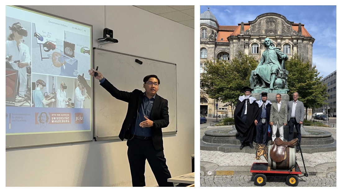 On 31th August 2022, Mr. Vuthea Chheang successfully completed his dissertation project with an excellent doctoral colloquium. The title of his dissertation thesis is "Collaborative Virtual Reality for Laparoscopic Liver Surgery Training and Planning".