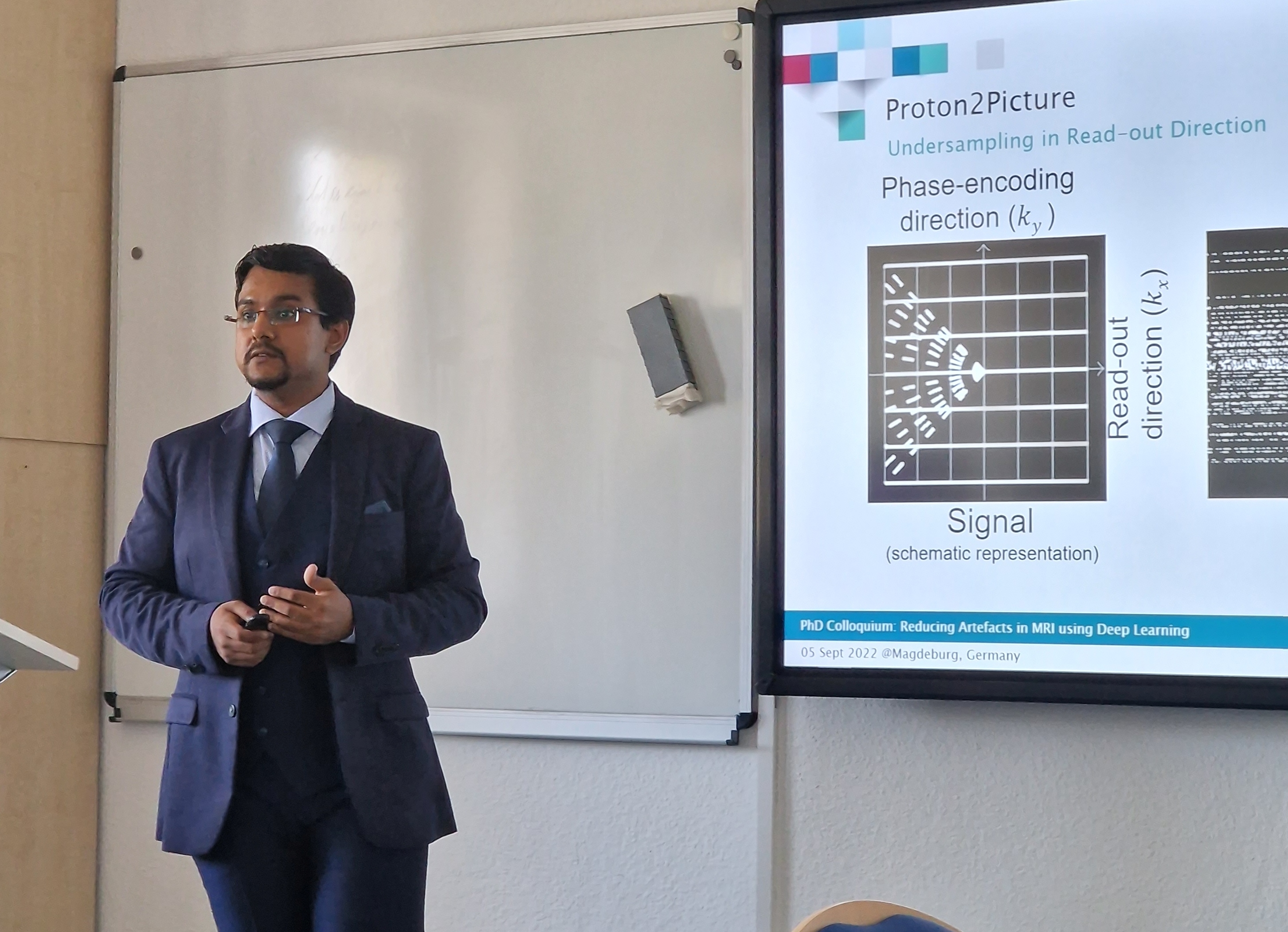 Herr Soumick Chatterjee verteidigte im Promotionskolloquium am 05.09.2022 erfolgreich sein Dissertationsvorhaben. Der Titel seiner Dissertationsschrift lautet “Reducing Artefacts in MRI Using Deep Learning: Enhancing Automatic Image Processing Pipelines”.