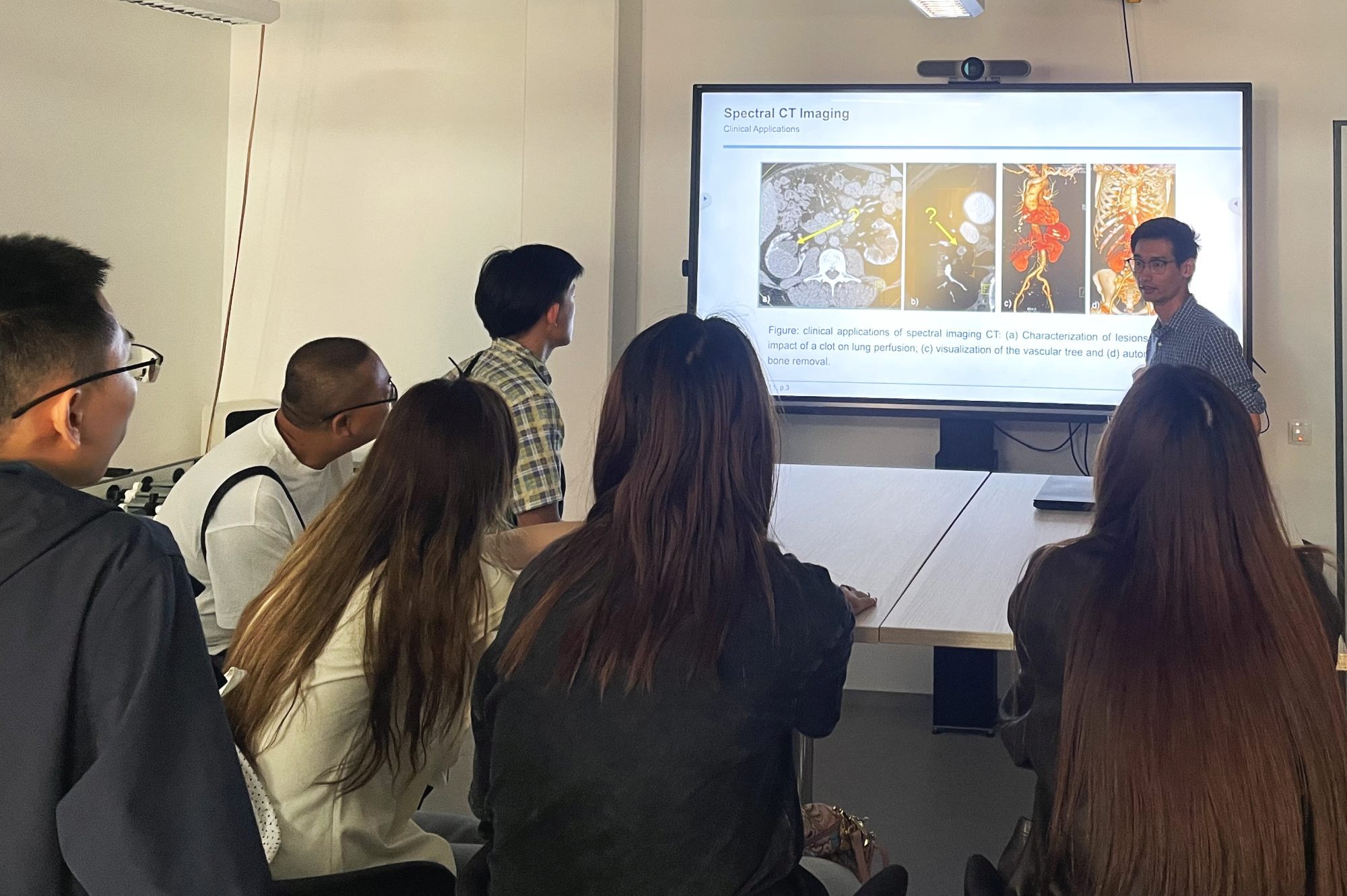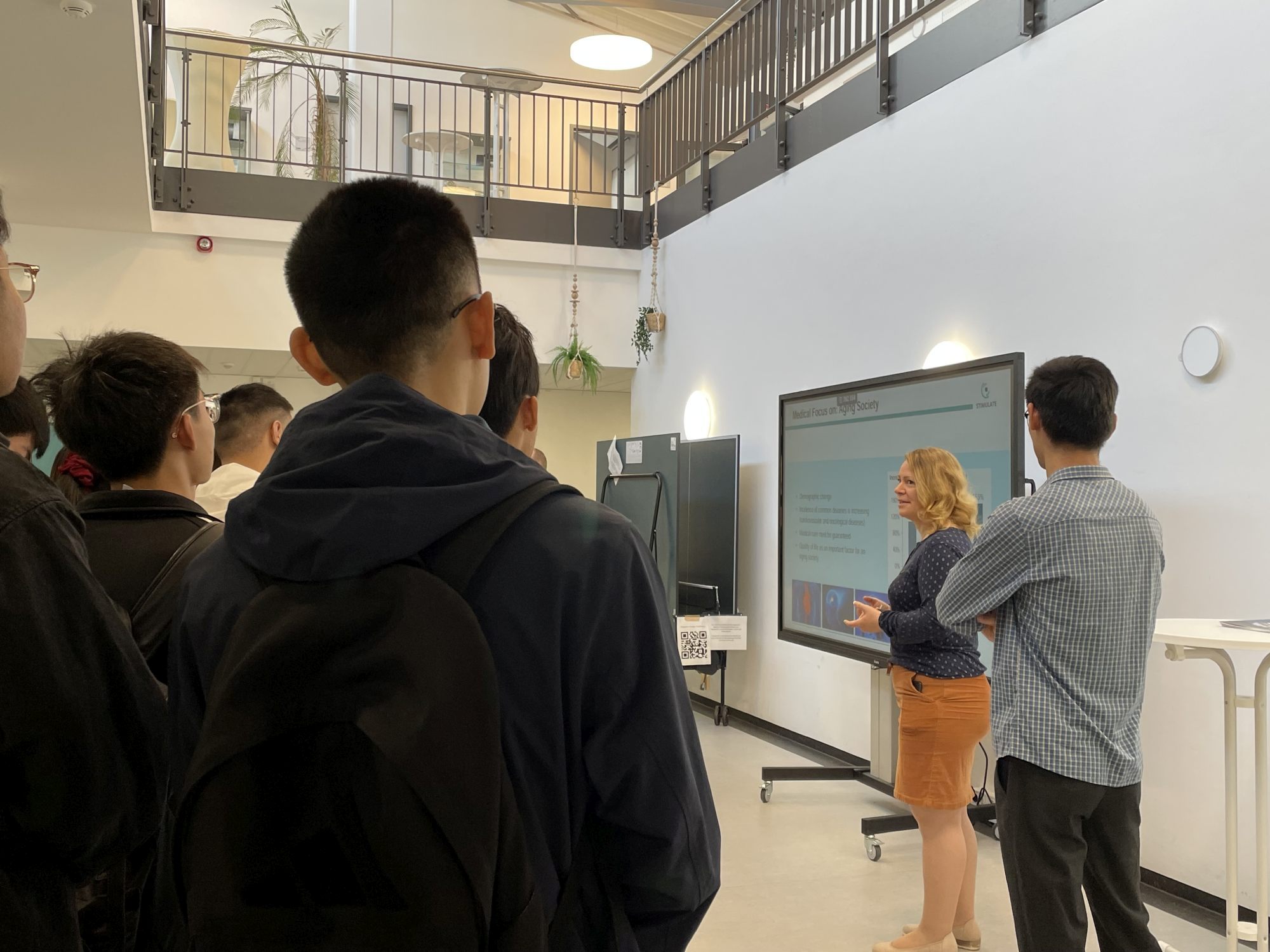 Im Rahmen ihres Aufenthalts erhielten die Gäste auch spannende Einblicke in die Forschung am Forschungscampus STIMULATE. Bei einer Campusführung stellten unsere Forschenden aktuelle Entwicklungen der bildgebenden Medizintechnik vor. Die Studierenden konnten dabei nicht nur einen Blick in unsere Labore werfen, sondern auch eine Präsentation zu laufenden CT-Forschungsthemen verfolgen.