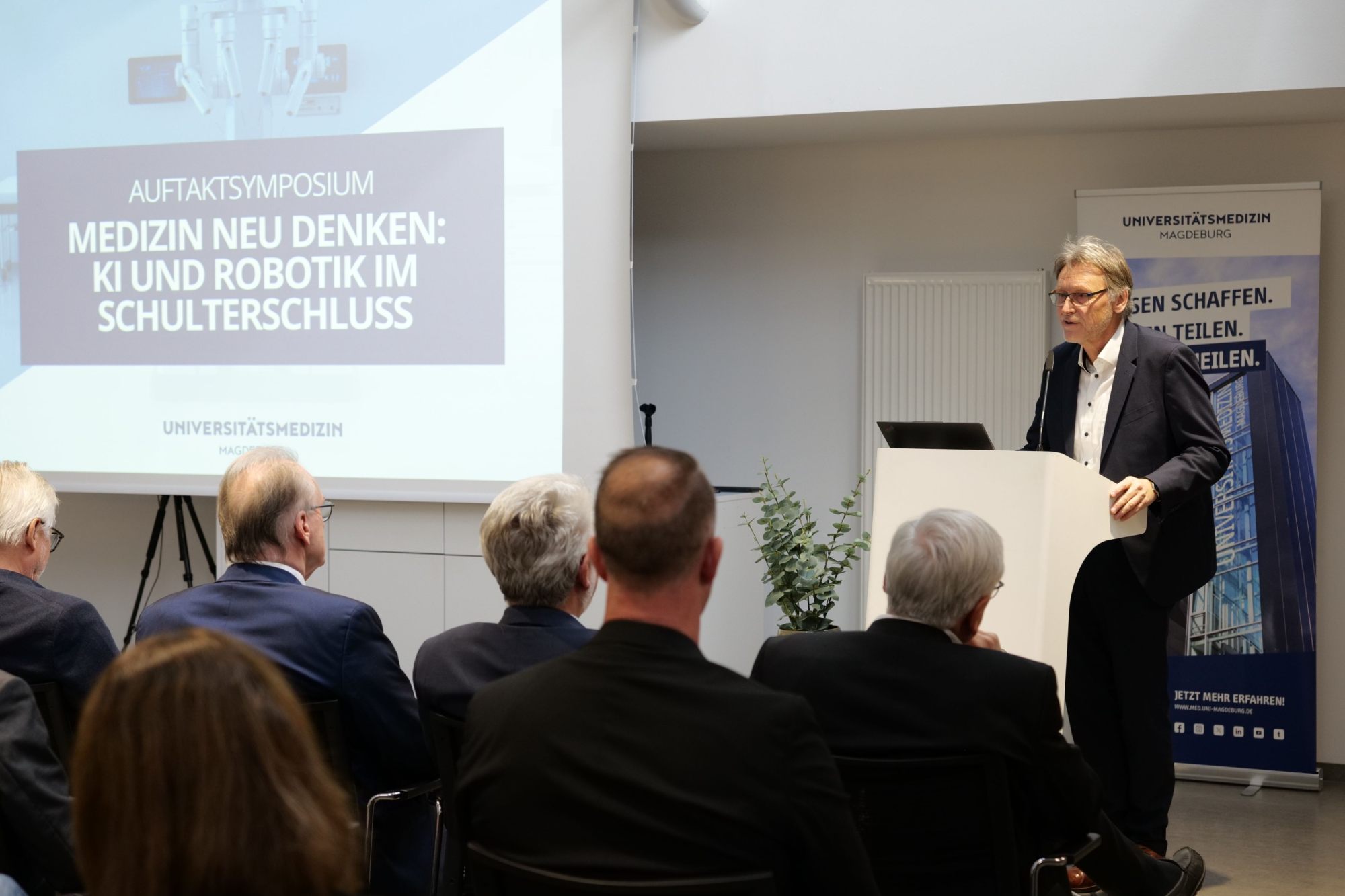 On 27 October 2025, the kick-off symposium for the strategic innovation partnership between Magdeburg University Hospital and BEC Medical took place at the Research Campus STIMULATE. Under the motto ‘Rethinking medicine: AI and robotics working together,’ representatives from politics, science and business came together to discuss new ways of achieving resilient, technologically advanced and sustainable healthcare.