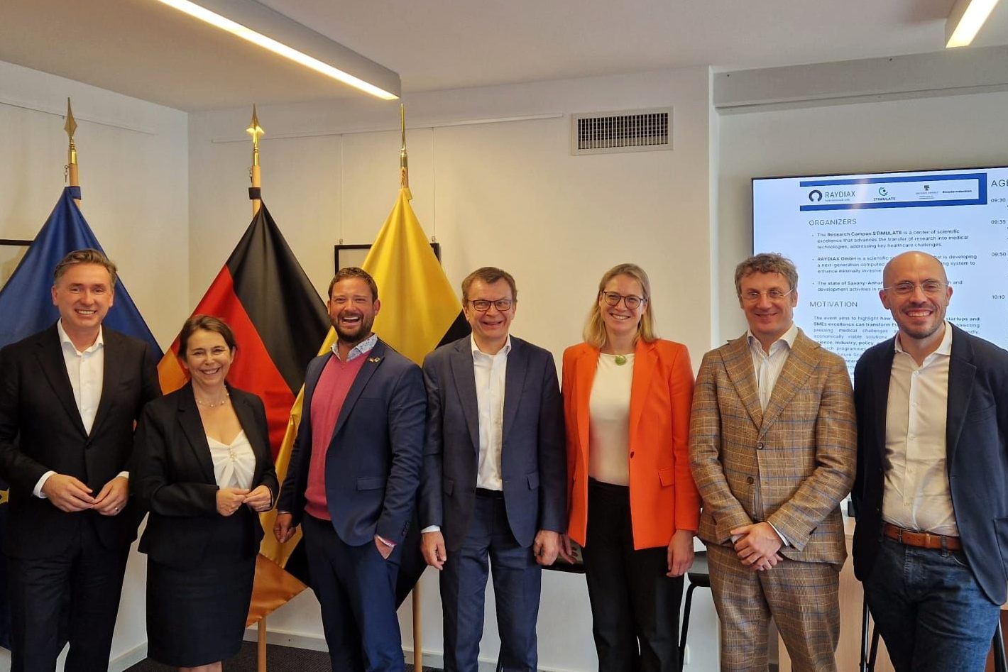 It was organised by the Research Campus STIMULATE, Otto von Guericke University Magdeburg and RAYDIAX GmbH, a medical technology start-up that emerged from STIMULATE. Around 70 participants from politics, business, science and EU institutions took part in the English-language event. It was opened by Daniel Wentzlaff, Deputy Head of the State Representation.