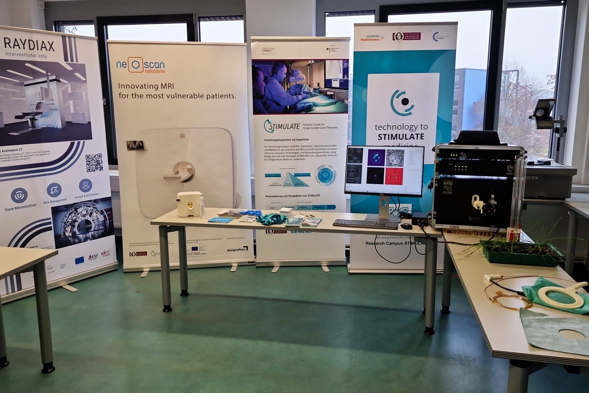 The demonstration of the mini MRI for use in plant science research was particularly impressive. Marcus Prier, a scientist at the Research Campus STIMULATE, showed how he has further developed the tabletop MRI as part of the EU project AgriPETMRI. This now makes it possible to measure plant structures on the move in the field, thereby gaining new insights into water and nutrient transport processes. This is an exciting example of the interdisciplinary use of modern imaging technologies.