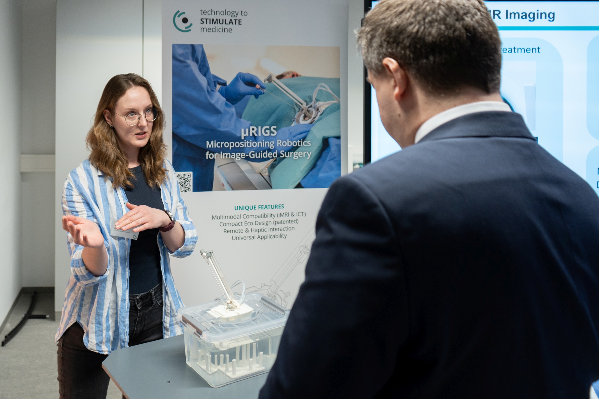 Two flagship start-ups in the ecosystem, Neoscan Solutions and RAYDIAX, presented practical examples of successful spin-offs and demonstrated how regional start-ups are being implemented in the field of minimally invasive and image-guided medical technology. Other companies and initiatives such as BEC Medical, Scanatiq, MESHwerk and μRIGS actively participated in the presentations and discussions.