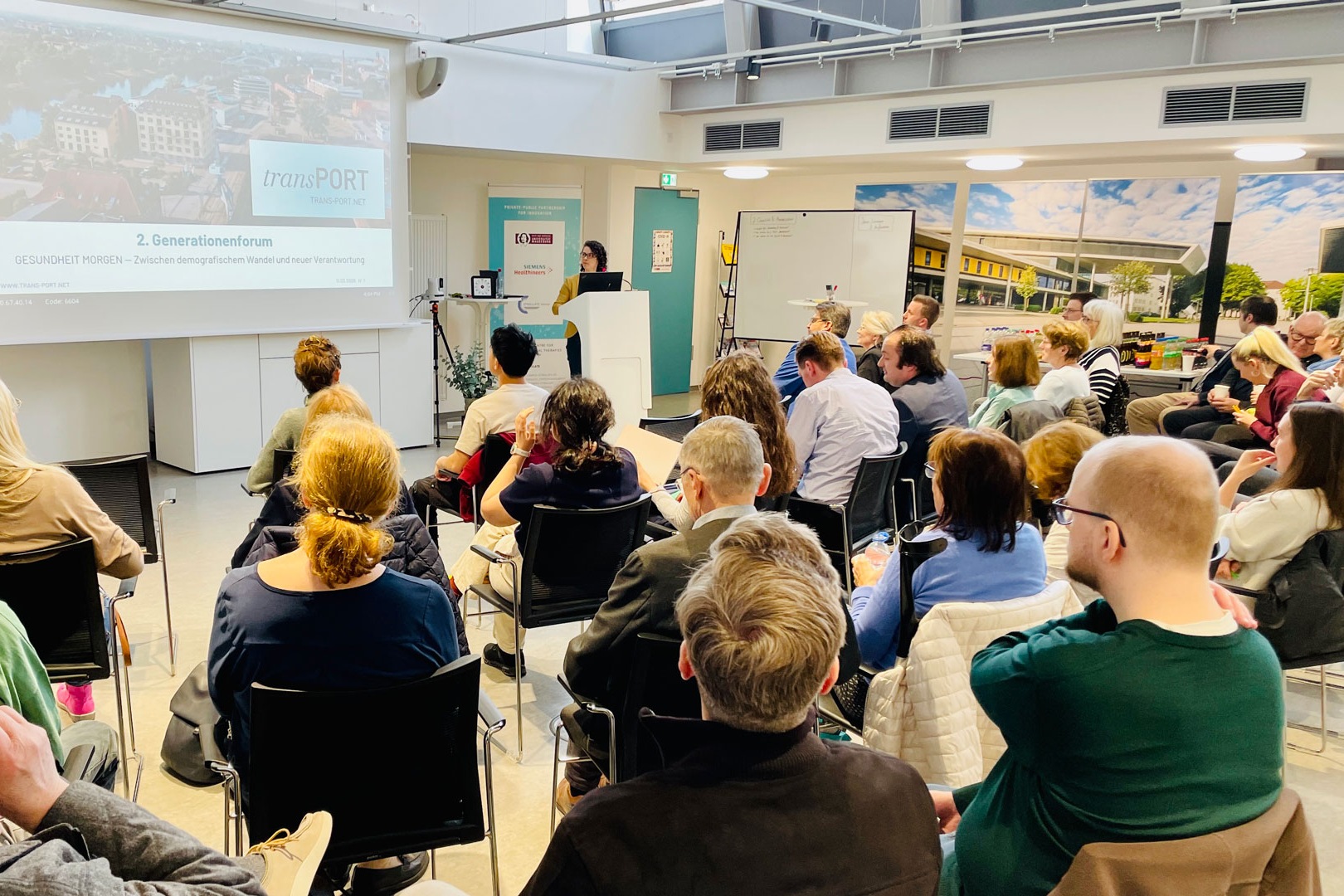 Beim zweiten Generationenforum im Wissenschaftshafen Magdeburg kamen Menschen unterschiedlicher Altersgruppen zusammen, um über die Zukunft der Gesundheitsversorgung ins Gespräch zu kommen. Ein Impuls von Steffi Suchant eröffnete den Austausch und gab wichtige Denkanstöße. Organisiert wurde das Generationenforum von transPOTENTIAL, einem Werkstattprojekt des TransferRaums transPORT.