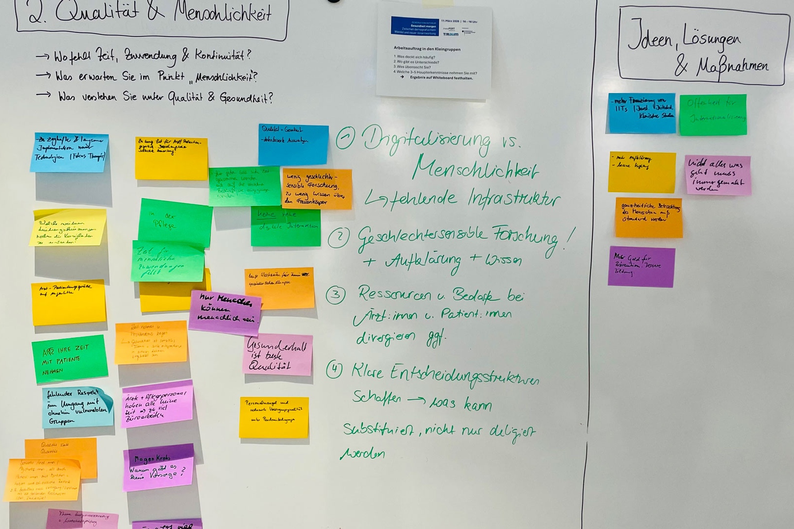 Afterwards, over 30 participants continued their work at various workshop stations, sharing experiences and developing ideas together. Insights into health policy provided by Tobias Krull informed the discussion. It became clear that, on many issues, there is broad consensus on what constitutes good healthcare – whilst at the same time highlighting areas where there are still gaps and where new solutions are needed.